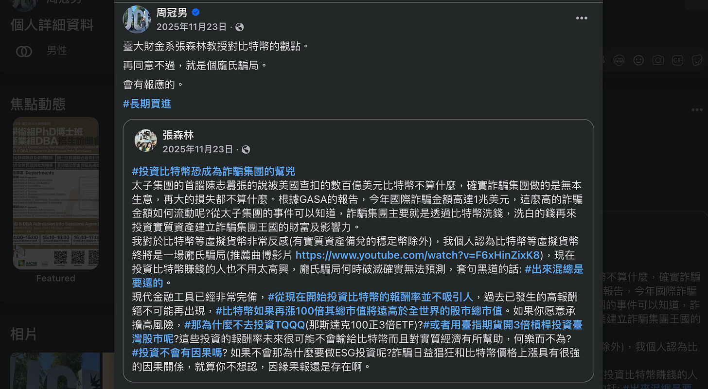 雖然加密貨幣被定調為洗錢工具的社會現象,Web3 公民早已見怪不怪;我也可以理解大眾總想在事件發生後,找個惡之根源來怪罪。畢竟就連兩位知名教授都曾公開批評,比特幣是詐諞幫凶、龐氏騙局。