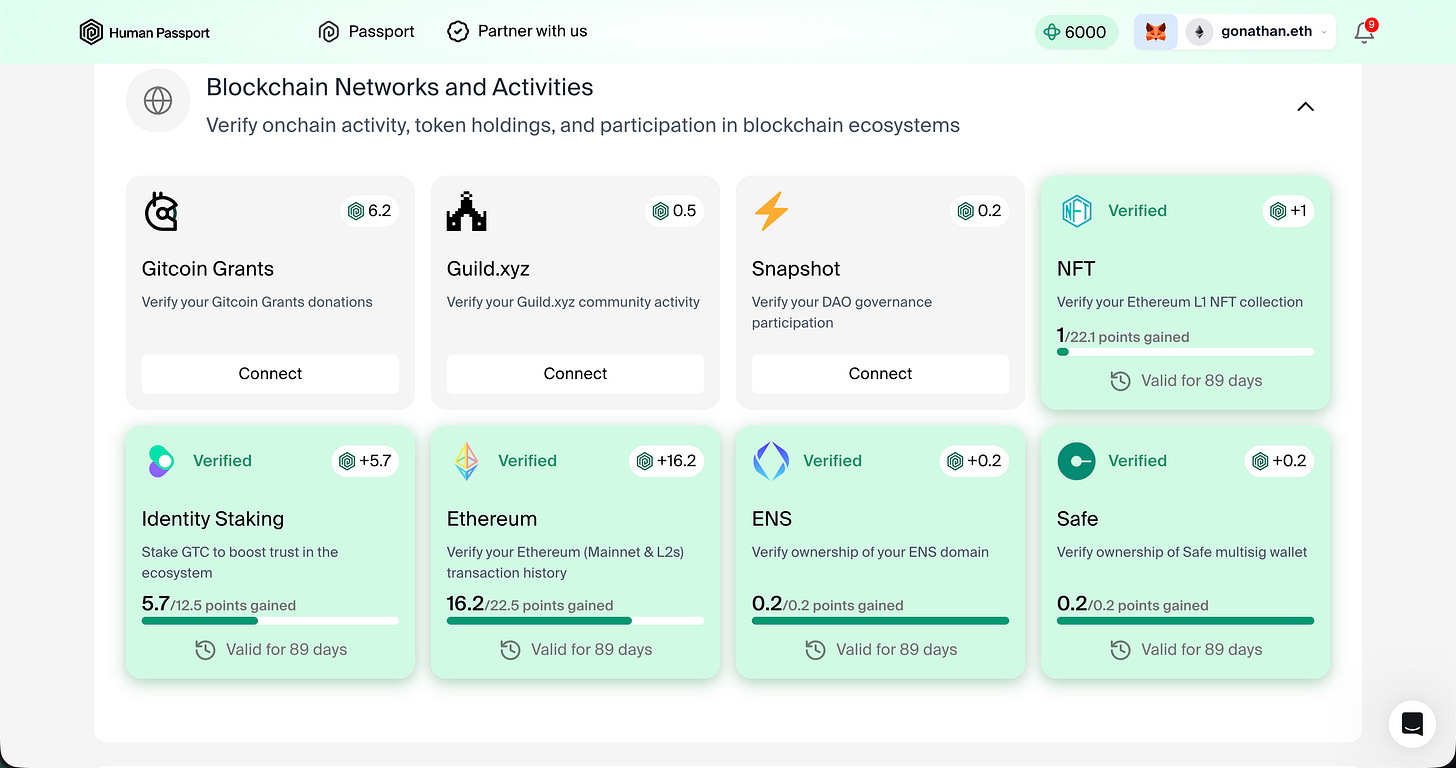 反過來說,重視隱私保護的朋友,其實只要選用鏈上活動憑證,就能在不洩漏個資的條件下進行真人檢測,因為它僅驗證以太坊交易紀錄、Gitcoin Grants 抖內紀錄、Safe 帳戶擁有權等鏈上活動。儘管這麼做會降低你能獲得的分數上限,但至少不必承擔額外的信任成本。