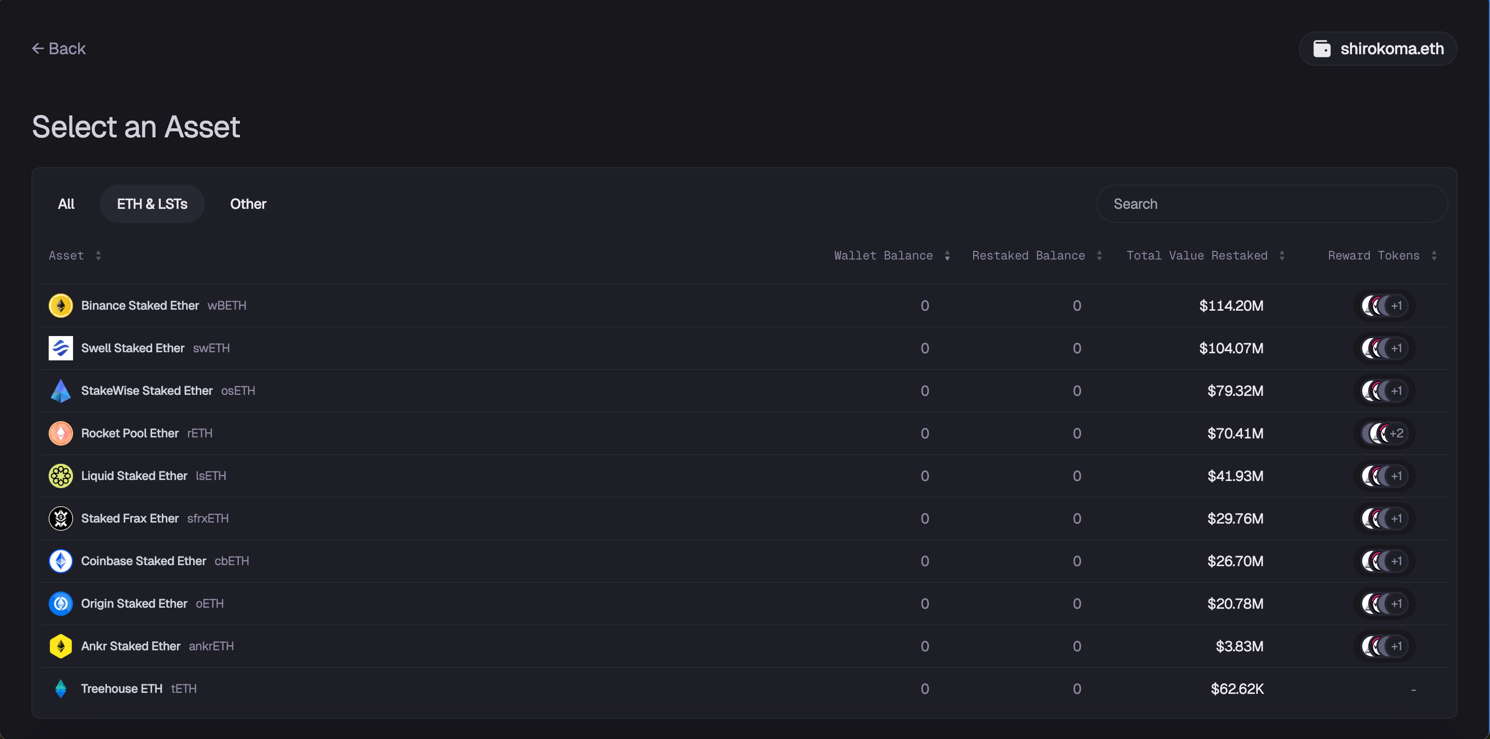 把 Select an Asset 欄位切換至「ETH & LSTs」,並選擇欲存入的 LST 種類