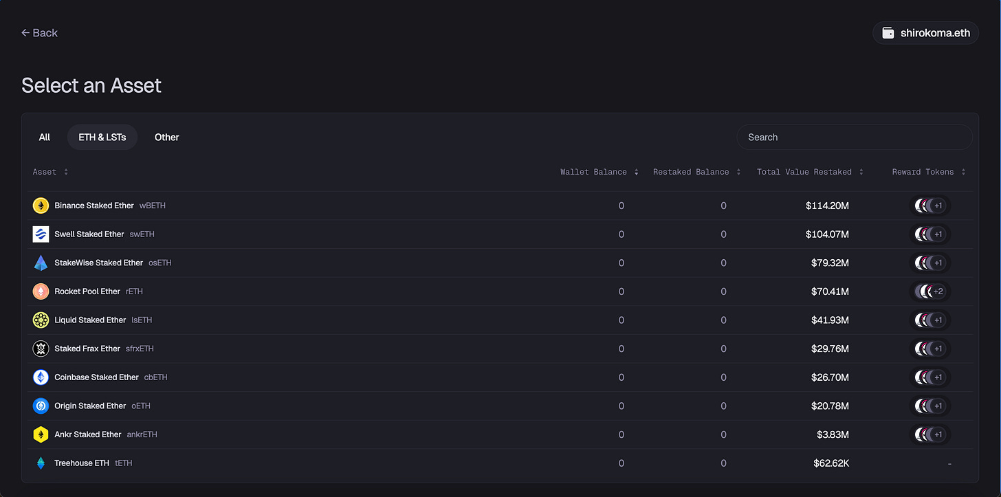 可以看出 EigenCloud 流動性再質押的步驟除了繁瑣之外,還多了一項「Delegate」環節,讓使用者選擇 Operator。雖然立意很好,但不夠友善,因為這代表使用者必須自行研究「哪些 Operator 負責哪些 AVS」,多數人並沒有這個美國時間。